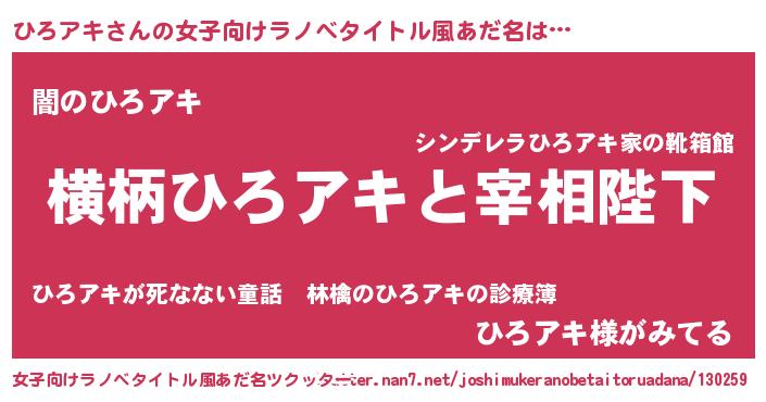 | 胡散臭い通販商品みたいなあだ名 | 『テレビで話題の高麗人参…その名も「ひろアキ」』 |