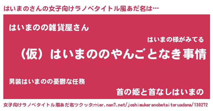| 男性向けラノベタイトル風あだ名 | 『はいまのの憂鬱』 |
