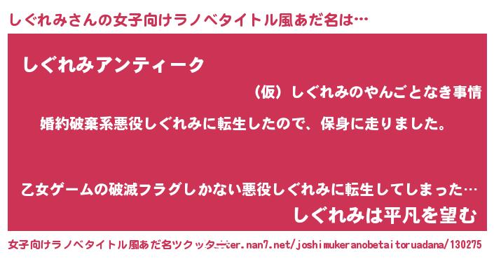 | 胡散臭い通販商品みたいなあだ名 | 『テレビで話題のアガリクス…その名も「しぐれみ」』 |