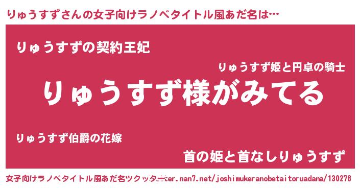 | 男性向けラノベタイトル風あだ名 | 『りゅうすずの嫁は女の子じゃないと思った?』 |