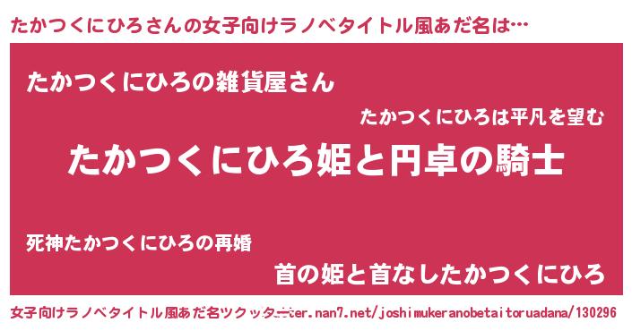| 胡散臭い通販商品みたいなあだ名 | 『モテモテ間違いなし水晶球…その名も「たかつくにひろ」』 |
