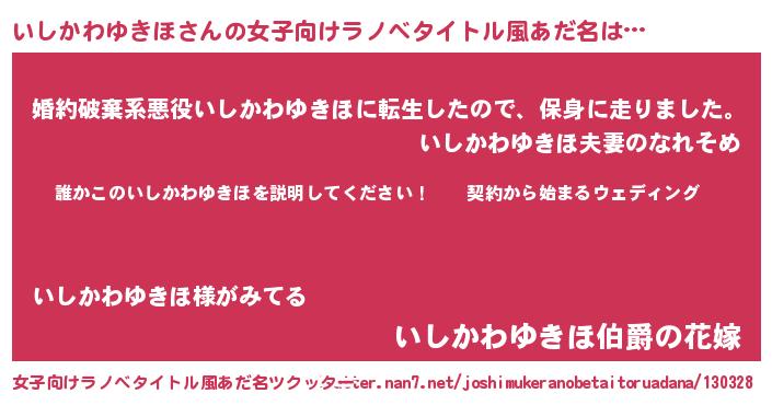 | 胡散臭い通販商品みたいなあだ名 | 『億万長者になれるブレスレット…その名も「いしかわゆきほ」』 |