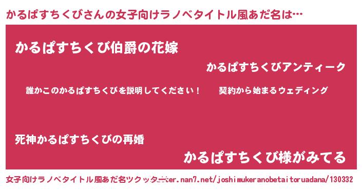 | 胡散臭い通販商品みたいなあだ名 | 『億万長者になれる水晶球…その名も「かるぱすちくび」』 |