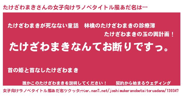 男性向けラノベタイトル風あだ名 | 『魔法科高校のたけざわまき』 |