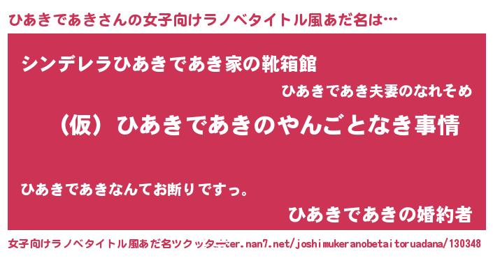 | 胡散臭い通販商品みたいなあだ名 | 『必ず成功するブレスレット…その名も「ひあきであき」』 |