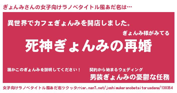 | 男性向けラノベタイトル風あだ名 | 『ノーゲーム・ノーギョンミ』 |