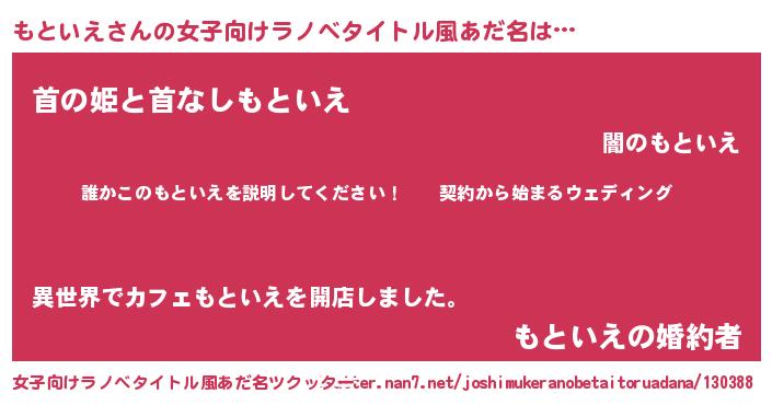 | 胡散臭い通販商品みたいなあだ名 | 『億万長者になれるブレスレット…その名も「もといえ」』 |