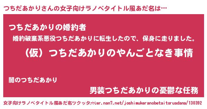 | 男性向けラノベタイトル風あだ名 | 『つちだあかりの憂鬱』 |
