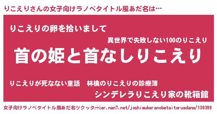 | 男性向けラノベタイトル風あだ名 | 『はたらくりこえりさま!』 |