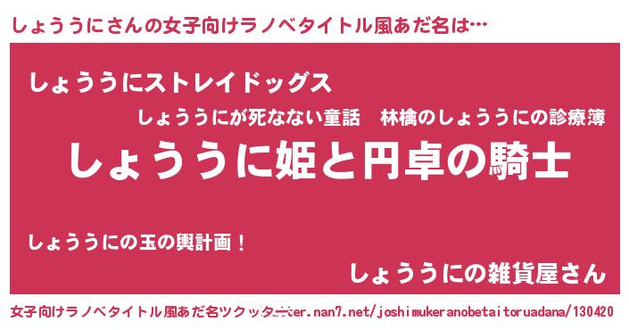 | 胡散臭い通販商品みたいなあだ名 | 『モテモテ間違いなし霊験あらたかなお札…その名も「しょううに」』 |