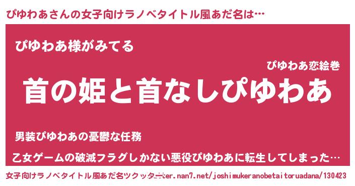| 男性向けラノベタイトル風あだ名 | 『はたらくぴゆわあさま!』 |