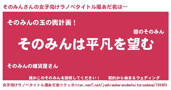 | 胡散臭い通販商品みたいなあだ名 | 『信頼と実績のサプリメント…その名も「そのみん」』 |
