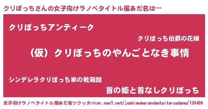 | 男性向けラノベタイトル風あだ名 | 『クリぼっちの憂鬱』『緋弾のクリボッチ』 |