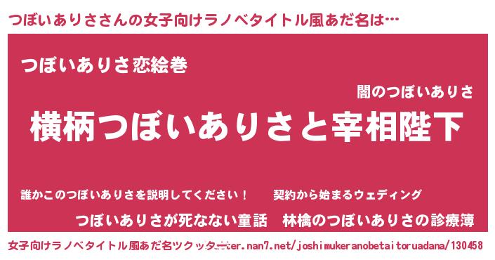 | ヘコむあだ名 | 『つぼにゅー』『つぼいありさ(笑)』 |