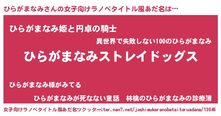 | ヘコむあだ名 | 『ひらにゅー』『ひらがまなみ(小並感)』 |
