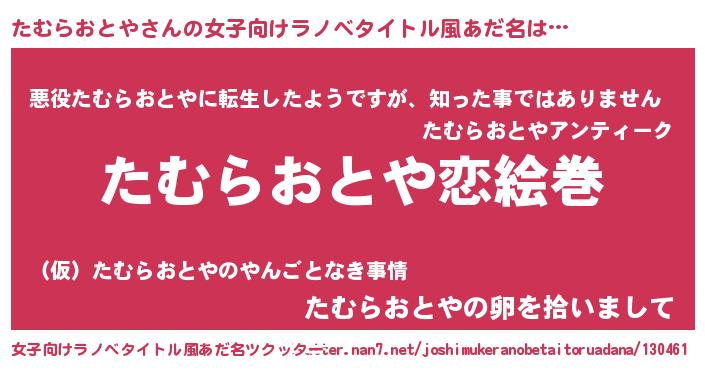 | 男性向けラノベタイトル風あだ名 | 『ノーゲーム・ノータムラオトヤ』 |
