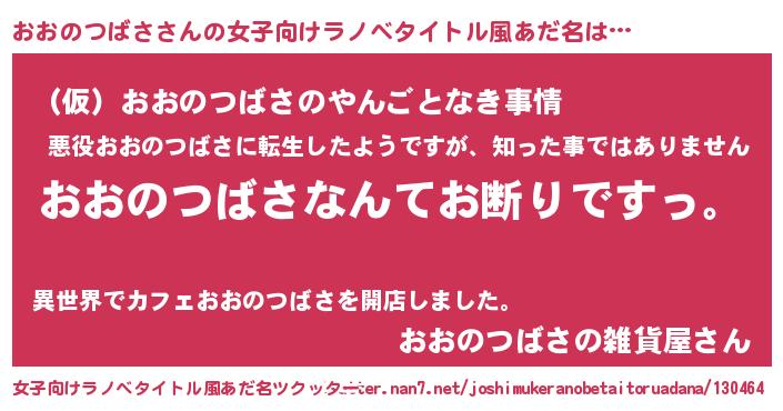 | 男性向けラノベタイトル風あだ名 | 『魔法科高校のおおのつばさ』 |