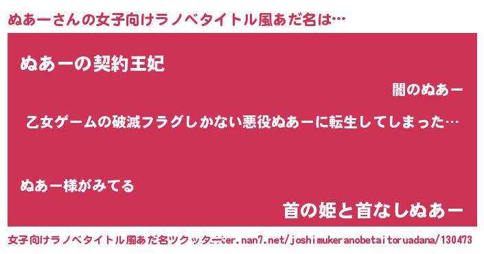 ぬあーさんの女子向けラノベタイトル風あだ名