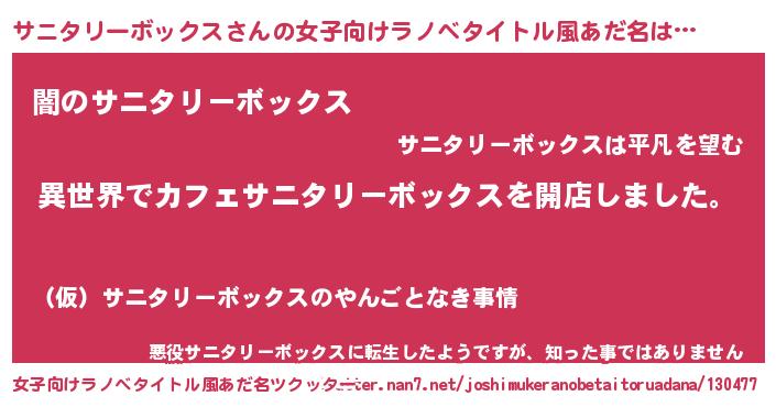 | 意味不明あだ名 | 『永久保存サニタリーボックス』 |