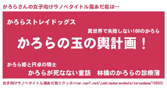 | 意味不明あだ名 | 『ヨモギ科かろら属』『自称かろら』 |
