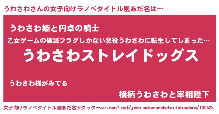 | 意味不明あだ名 | 『自称うわさわ』『ペロリンうわさわ』 |