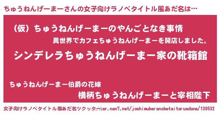| 2回繰り返すあだ名 | 『ちろちろ』『ちゅちゅ』『ちちゅゅ』 |