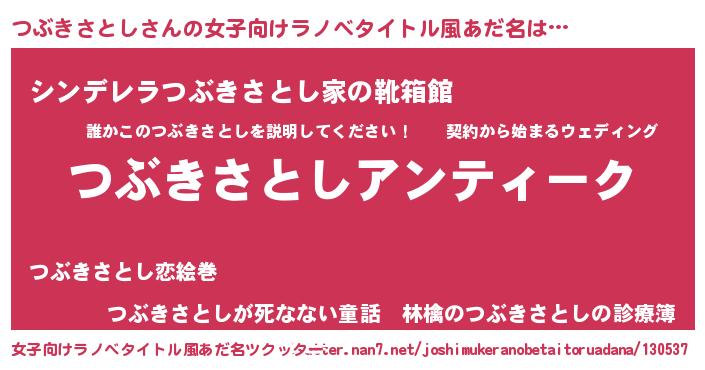 | 意味不明あだ名 | 『自称つぶきさとし』 |