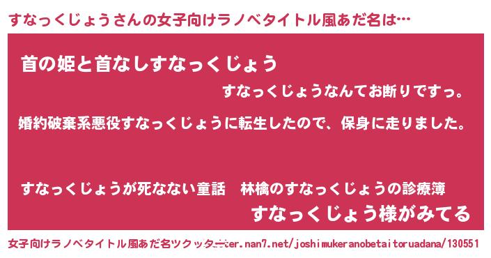 | ヘコむあだ名 | 『すなっ子』『すなっくじょう(笑)』 |