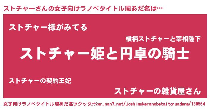 | 胡散臭い通販商品みたいなあだ名 | 『モテモテ間違いなし霊験あらたかなお札…その名も「ストチャー」』 |
