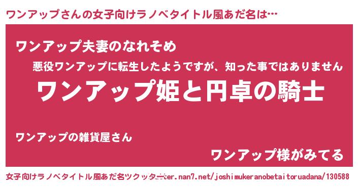 | ヒーロー風カッコイイあだ名 | 『スーパーワンアップ』『炎刃騎士ワン』 |