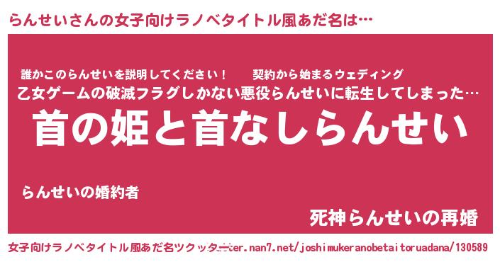 | 男性向けラノベタイトル風あだ名 | 『はたらくらんせいさま!』 |