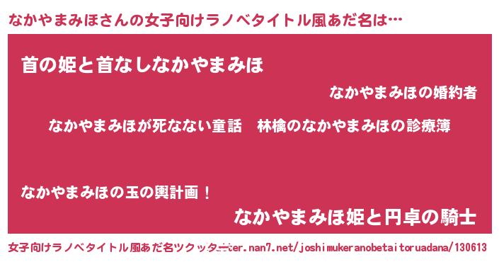 | 男性向けラノベタイトル風あだ名 | 『魔弾の王となかやまみほ』 |