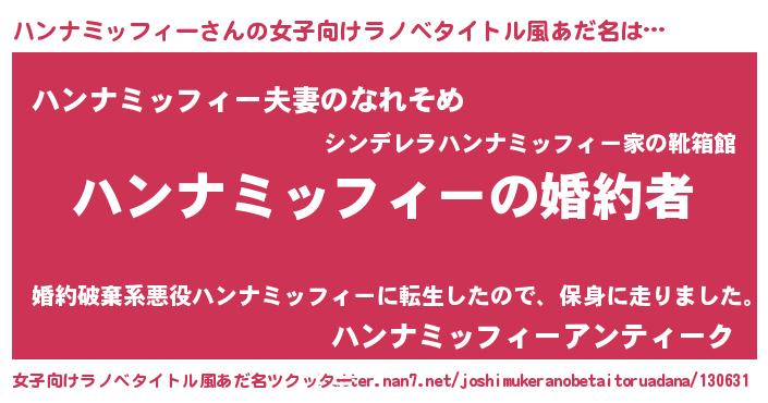 | 欧米人風あだ名 | 『ハンナミッフィークリステル』 |
