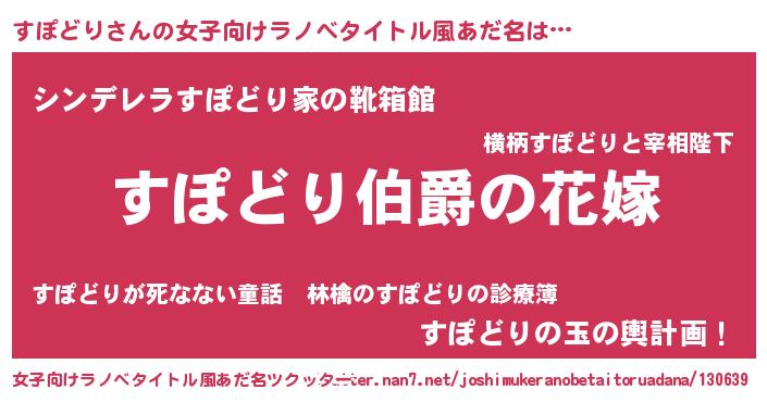 | 男性向けラノベタイトル風あだ名 | 『やはりすぽどりの青春ラブコメはまちがっている 』 |