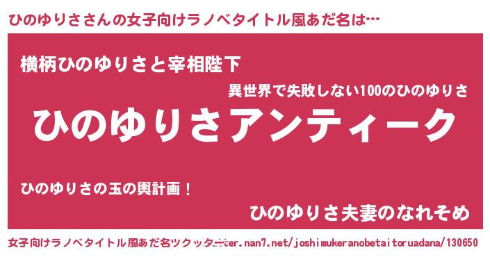 | 意味不明あだ名 | 『自称ひのゆりさ』『永久保存ひのゆりさ』 |