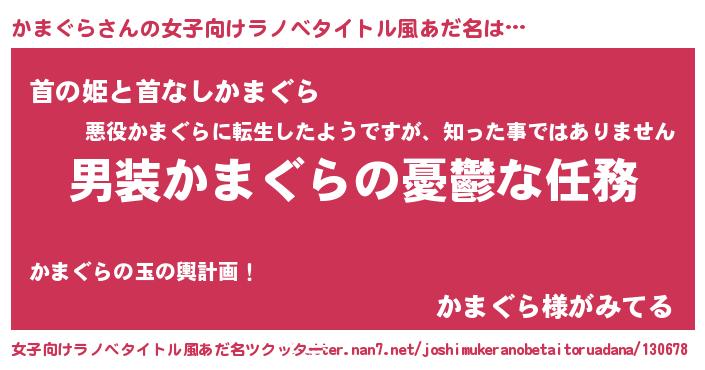 | 男性向けラノベタイトル風あだ名 | 『うちのかまぐらが世界を掌握している!』 |
