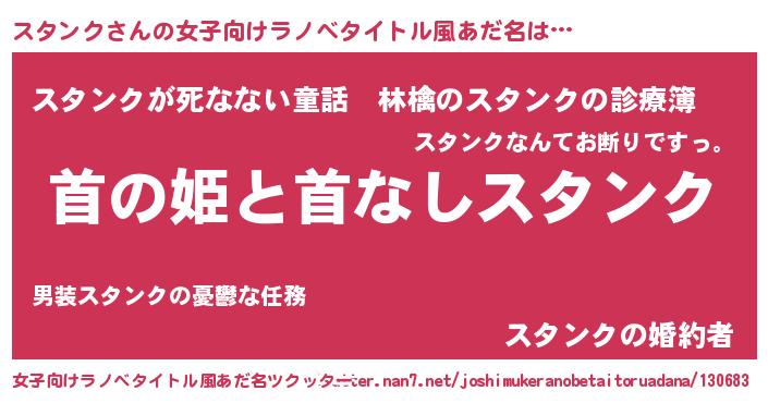 | 男性向けラノベタイトル風あだ名 | 『はたらくスタンクさま!』 |