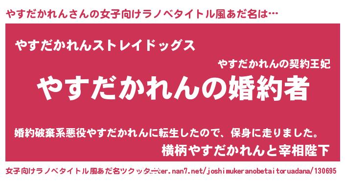 | 胡散臭い通販商品みたいなあだ名 | 『運命の人と巡り会える高級そうな壺…その名も「やすだかれん」』 |