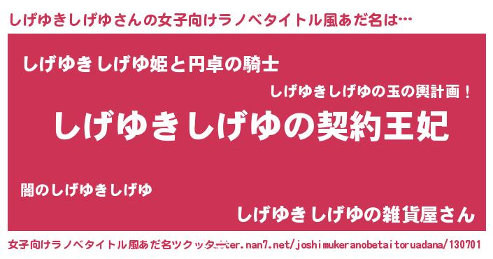 | 胡散臭い通販商品みたいなあだ名 | 『来世でも幸せになれる水素水…その名も「しげゆきしげゆ」』 |