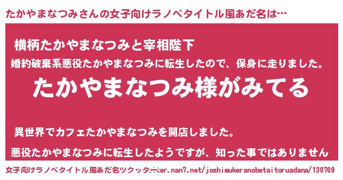 | 意味不明あだ名 | 『とにかく怪しいたかやまなつみ』 |