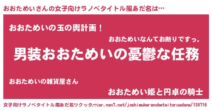 | 胡散臭い通販商品みたいなあだ名 | 『億万長者になれるブレスレット…その名も「おおためい」』 |