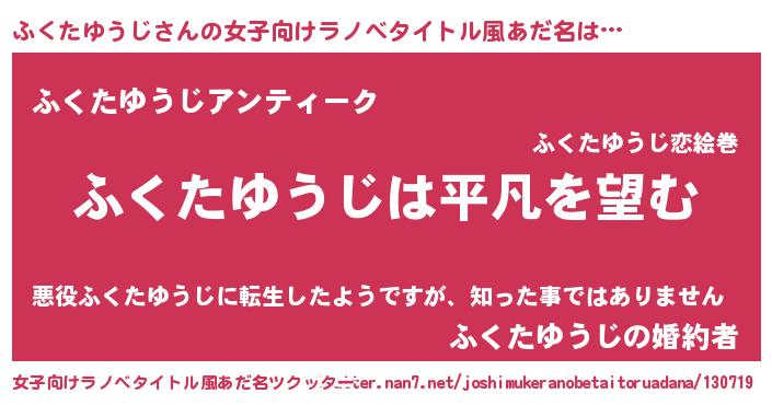 | 胡散臭い通販商品みたいなあだ名 | 『信頼と実績のサプリメント…その名も「ふくたゆうじ」』 |