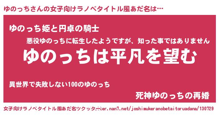 | 胡散臭い通販商品みたいなあだ名 | 『信頼と実績のネックレス…その名も「ゆのっち」』 |