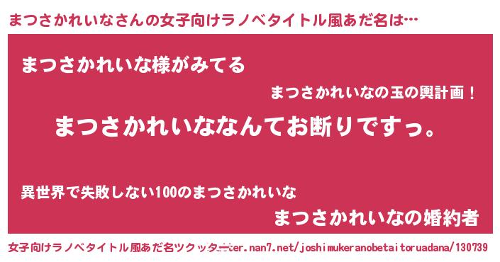 男性向けラノベタイトル風あだ名 | 『魔法科高校のまつさかれいな』 |
