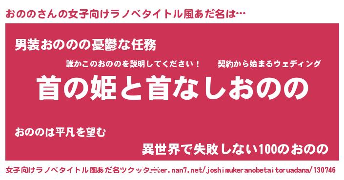 | 胡散臭い通販商品みたいなあだ名 | 『絶対に幸福をもたらす水素水…その名も「おのの」』 |