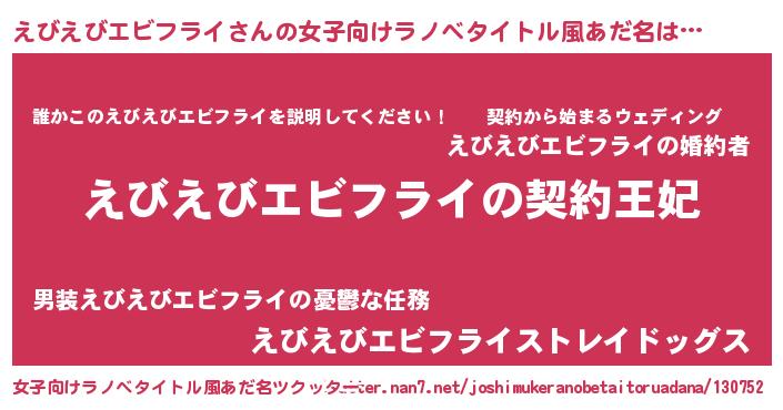 | 胡散臭い通販商品みたいなあだ名 | 『来世でも幸せになれる水素水…その名も「えびえびエビフライ」』 |