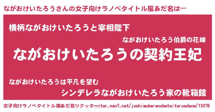 | 意味不明あだ名 | 『永久保存ながおけいたろう』 |