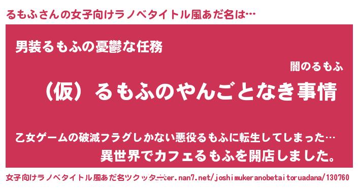 | 男性向けラノベタイトル風あだ名 | 『るもふの憂鬱』『魔弾の王とるもふ』 |