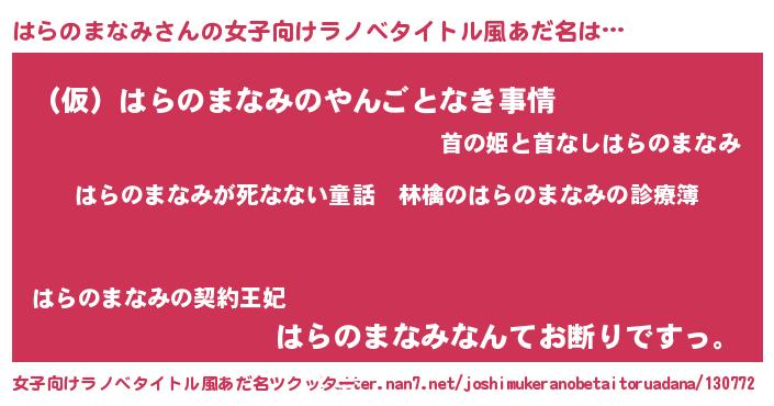 | 意味不明あだ名 | 『住所不定無職はらのまなみ(77歳)』 |