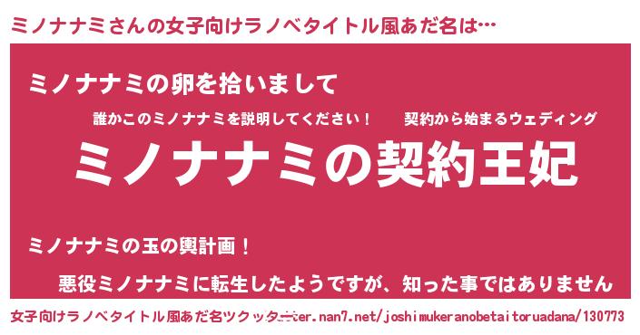| 男性向けラノベタイトル風あだ名 | 『ミノナナミという概念が存在しない退屈な世界 』 |